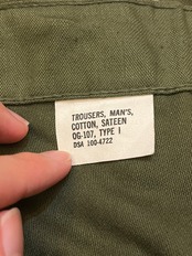 Dead Stock 60s US Military Cotton Sateen OG-107 Utility Trousers デッドストック 60年代 米軍実物 ユーティリティトラウザー ベイカーパンツ