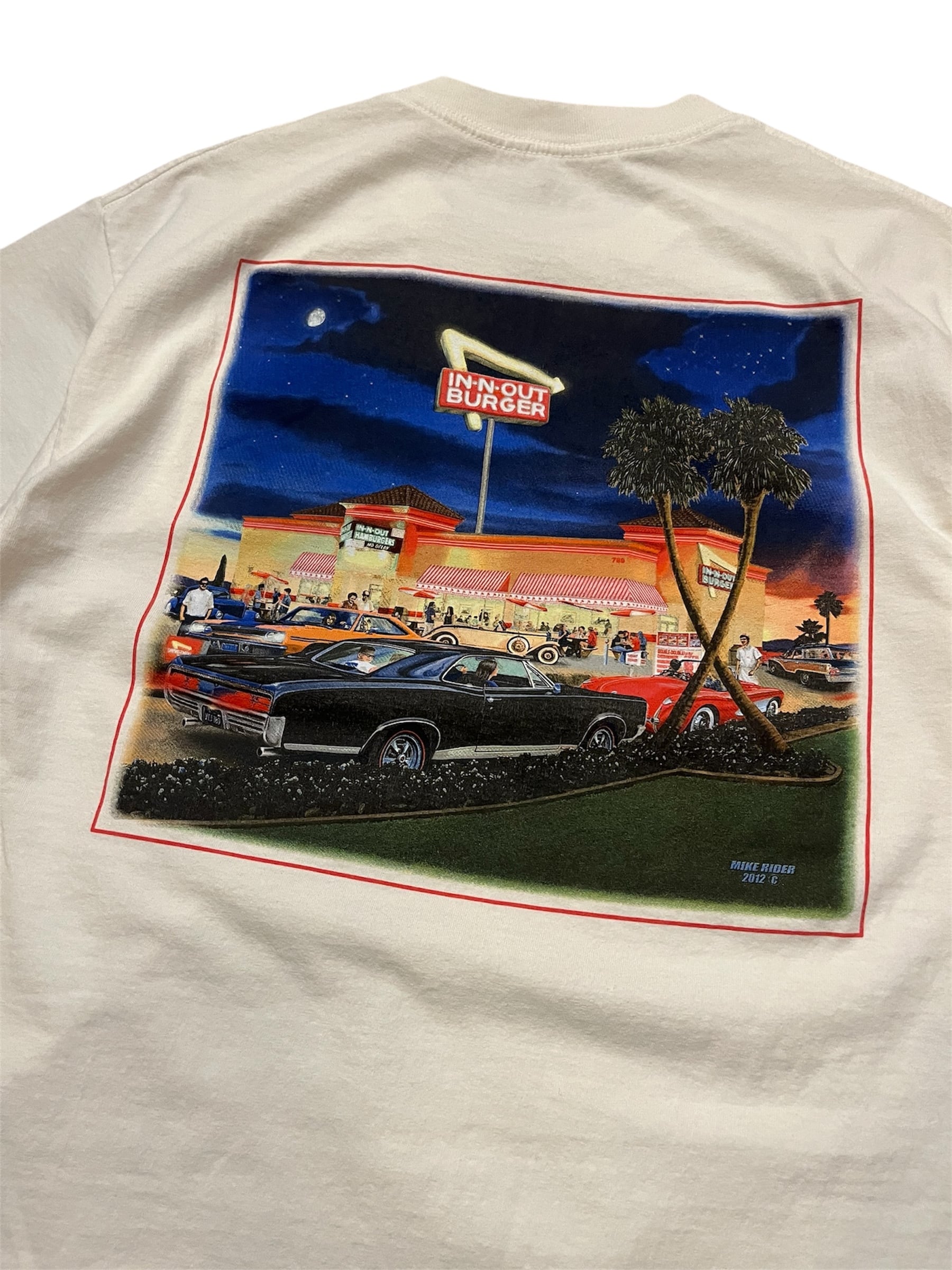 シボレーらしいクラシックカーとIn-N-Outの店舗がデザインされた良いバックプリント!