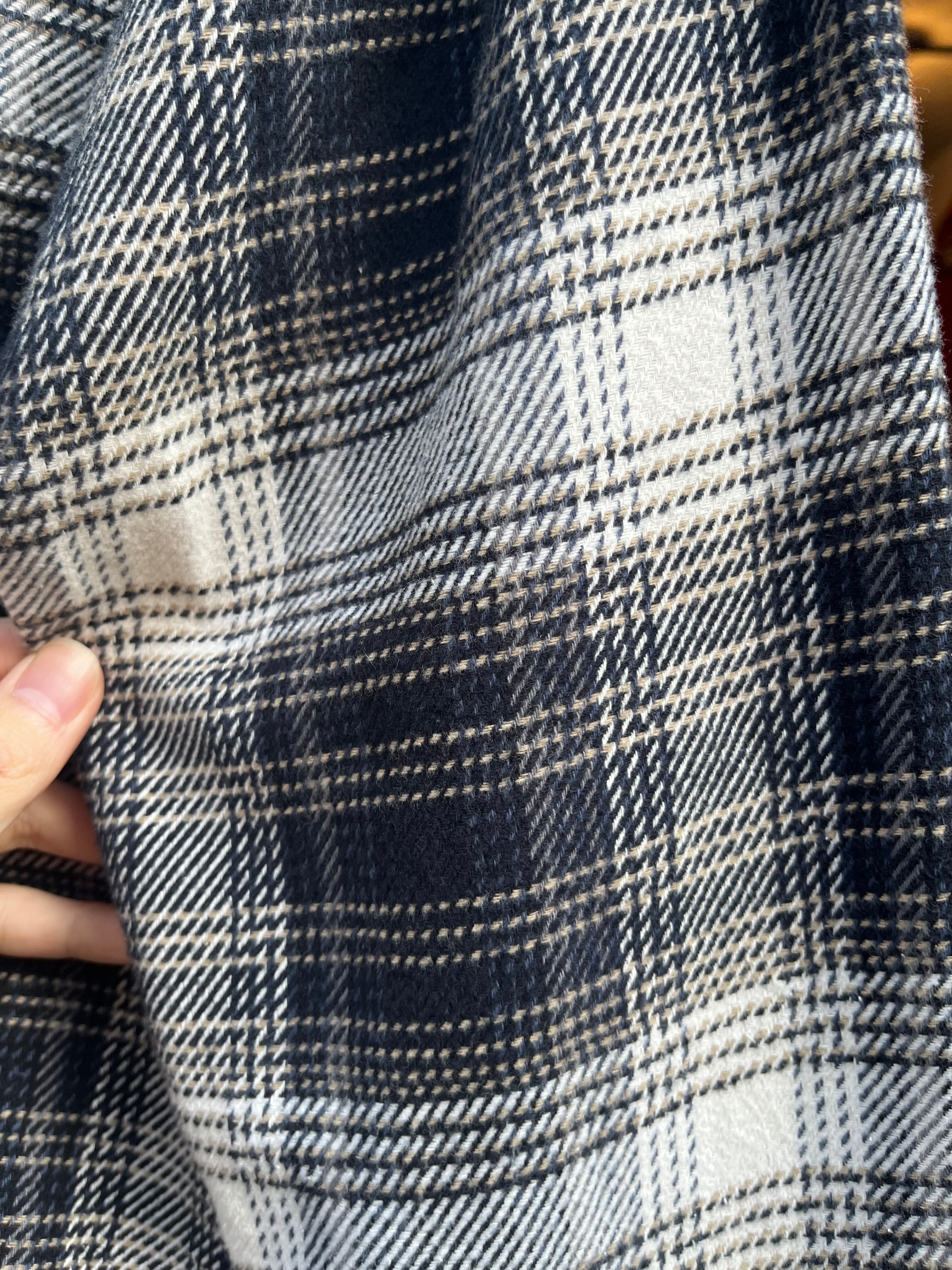 白黒に見えますが近くで見ると生成り地にネイビー、黒のグラデーションになっていると思います。